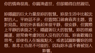潛意識狀態: 您可能正經歷一段壓力期,需要一個可以依靠的港灣。您渴望與親密的人進行深度、坦誠的交流,獲得無條件的理解和支持。