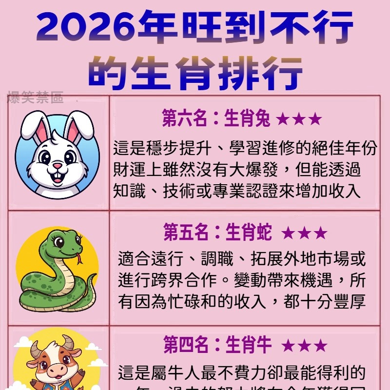 🔥 運勢最強六大生肖:從第六名開始揭曉