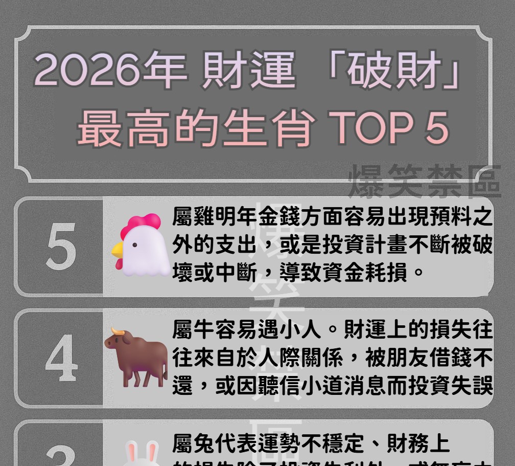 2026 丙午火馬年,運勢波動在所難免。這五個生肖雖然在財運上會面臨一些挑戰,但只要提前預防、做好規劃,就能將風險轉化為成長。請將這份榜單視為一份「守財指南」,而非警鐘!