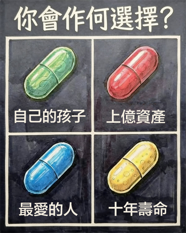 這是一個極致的人性考驗:如果現在給你 600 萬,但代價是必須從以下四個生命中最重要的選項中「永久刪除」一個,你的抉擇將直指你靈魂深處最真實的渴望。